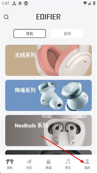 1、在EDIFIER页面点击底部我的,进入个人页面。