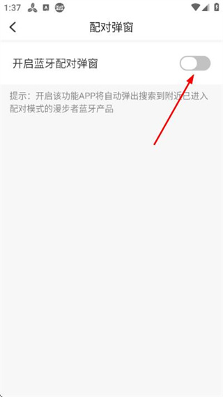 3、在配对弹窗页面点击开启蓝牙配对弹窗对应的开关,开启该功能。