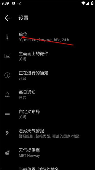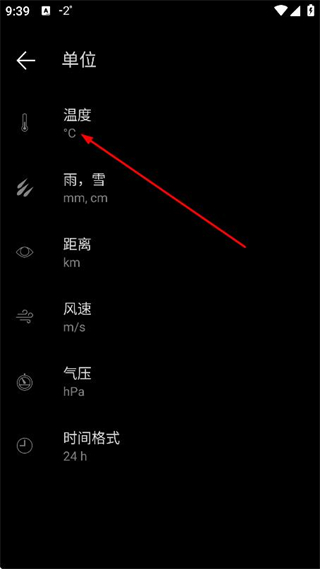 4、在单位页面点击温度选项,弹出温度单位选择框。