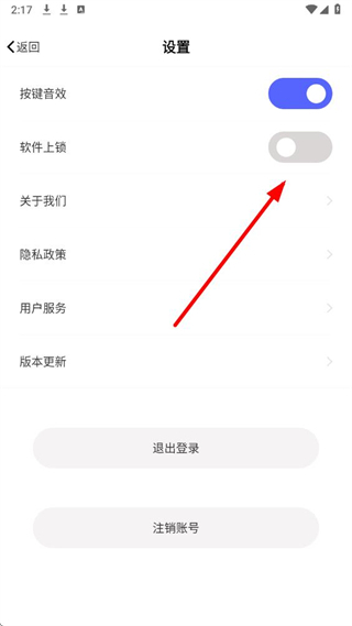 3、在设置界面,找到软件上锁选项,点击其右侧的开关按钮开启该功能。