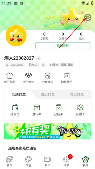 1、在星潮的首页,点击底部的我的选项,进入个人中心页面。