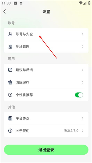 3、在设置页面,点击账号与安全选项,进入账户与安全页面。