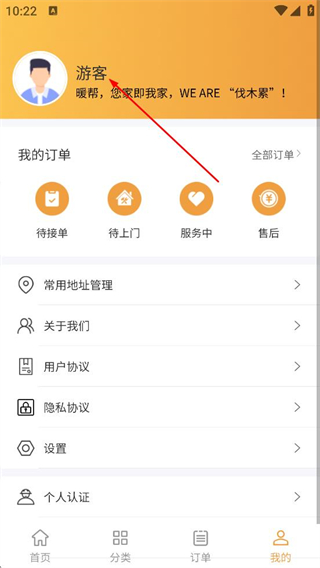 2、在个人中心页面,点击游客区域,进入登录暖帮页面。