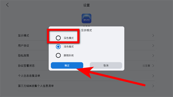 比亚迪畅联app怎么切换显示模式