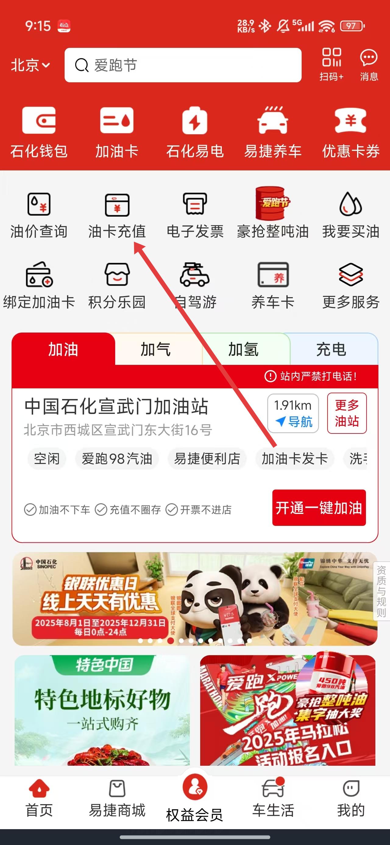 1、在中国石化加油卡掌上营业厅登录后,点击首页中的油卡充值按钮,进行充值操作。