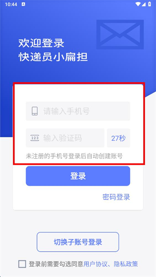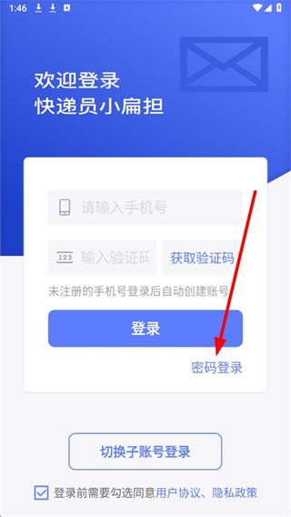 1、在登录页面输入手机号,获取验证码,未注册手机号将自动创建账号。
