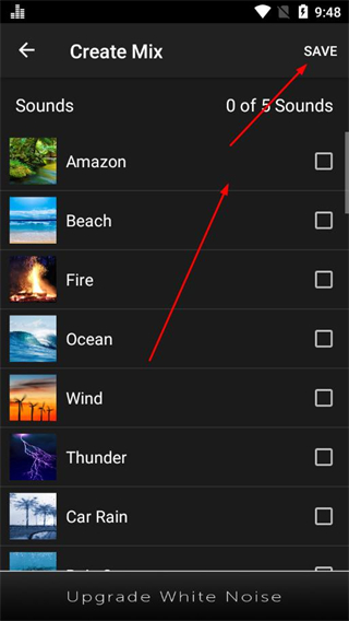 3、进入Create Mix页面,勾选想要组合的音效,点击SAVE保存。