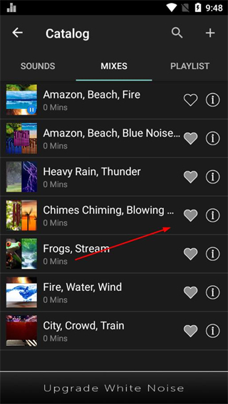 5、进入Mixes页面,点击对应音效组合的播放按钮,即可播放催眠音效。