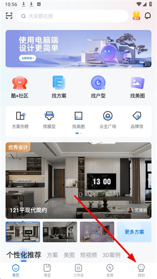 1、在酷家乐设计师应用界面,点击底部我的选项,进入个人页面。