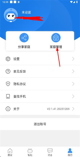 2、在我的页面点击家庭管理选项,进入家庭管理页面。