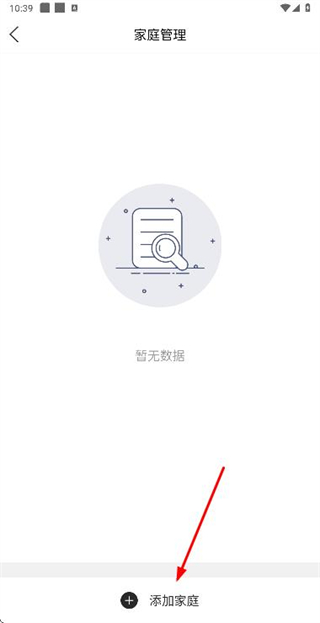 3、在家庭管理页面点击添加家庭按钮,进入扫一扫页面。
