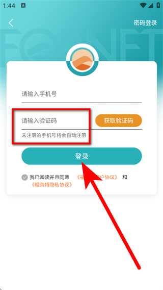 4、在输入框,输入验证码,勾选协议后,点击登录,完成登录。