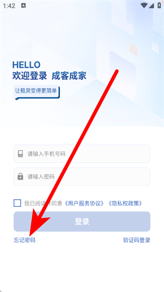 2、在密码登录页面,点击忘记密码,进入忘记密码页面。