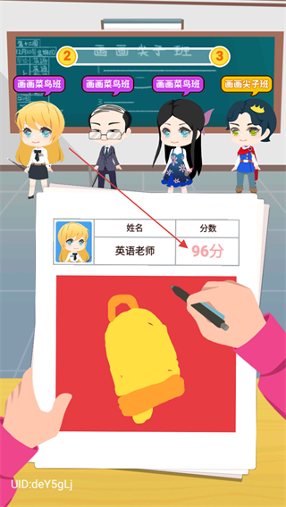 2、提交画作后,英语老师的作品获得96分,完成对应评分环节。