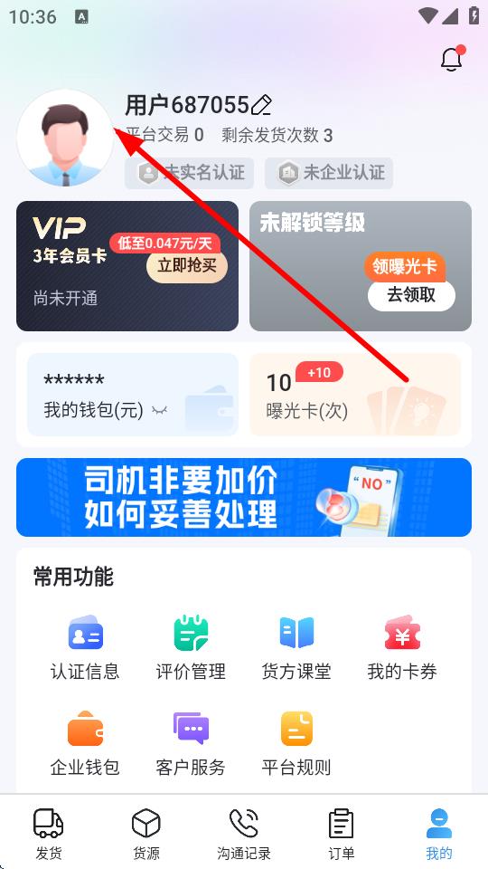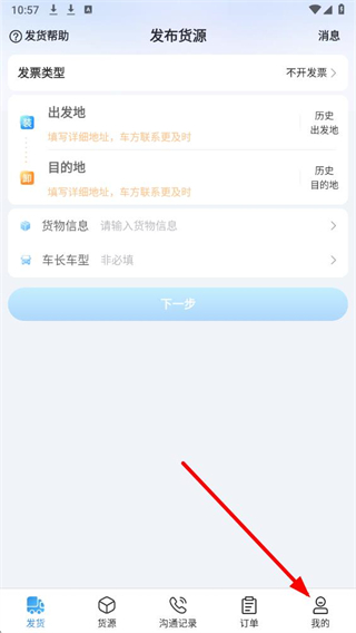 1、打开特运通货主应用,点击页面底部我的选项,进入个人页面。