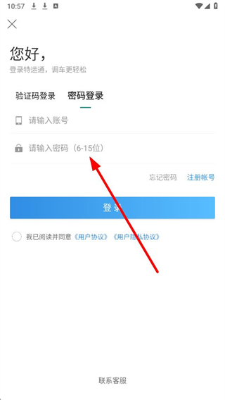 3、在密码登录页面,输入账号和密码,勾选协议后,点击登录按钮,即可完成密码登录。