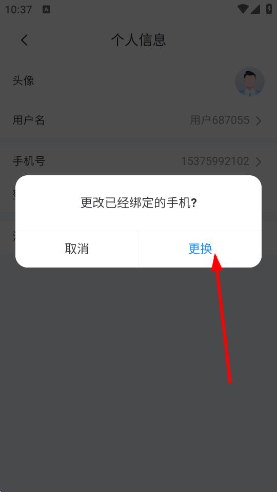 4、在弹出的更改已经绑定的手机提示框中,点击更换,然后按照后续提示完成手机号的绑定操作。