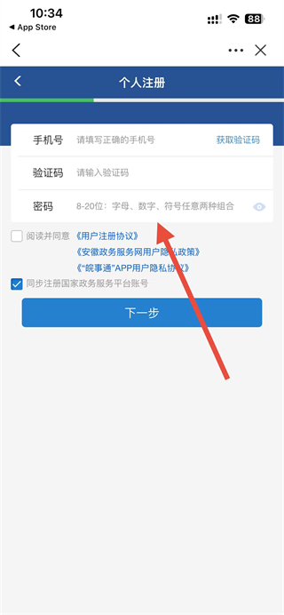 4、在页面填写手机号,获取验证码,接着设置密码,勾选协议后点击下一步,按提示完成注册。
