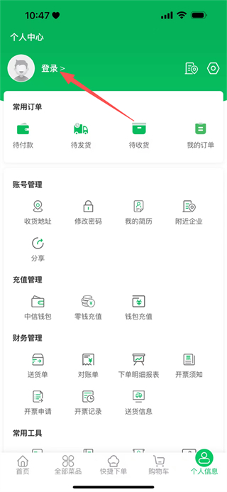 3、在个人中心页面,点击顶部的登录选项,即可进入登录页面。