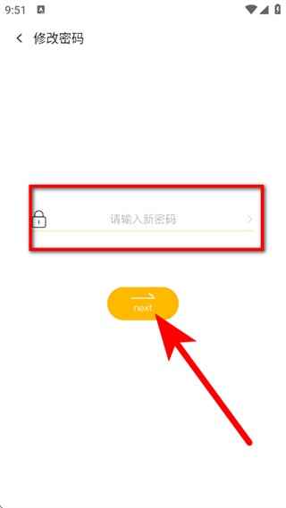 4、在修改密码页面,在请输入新密码框填写新密码,点击next,完成密码修改。