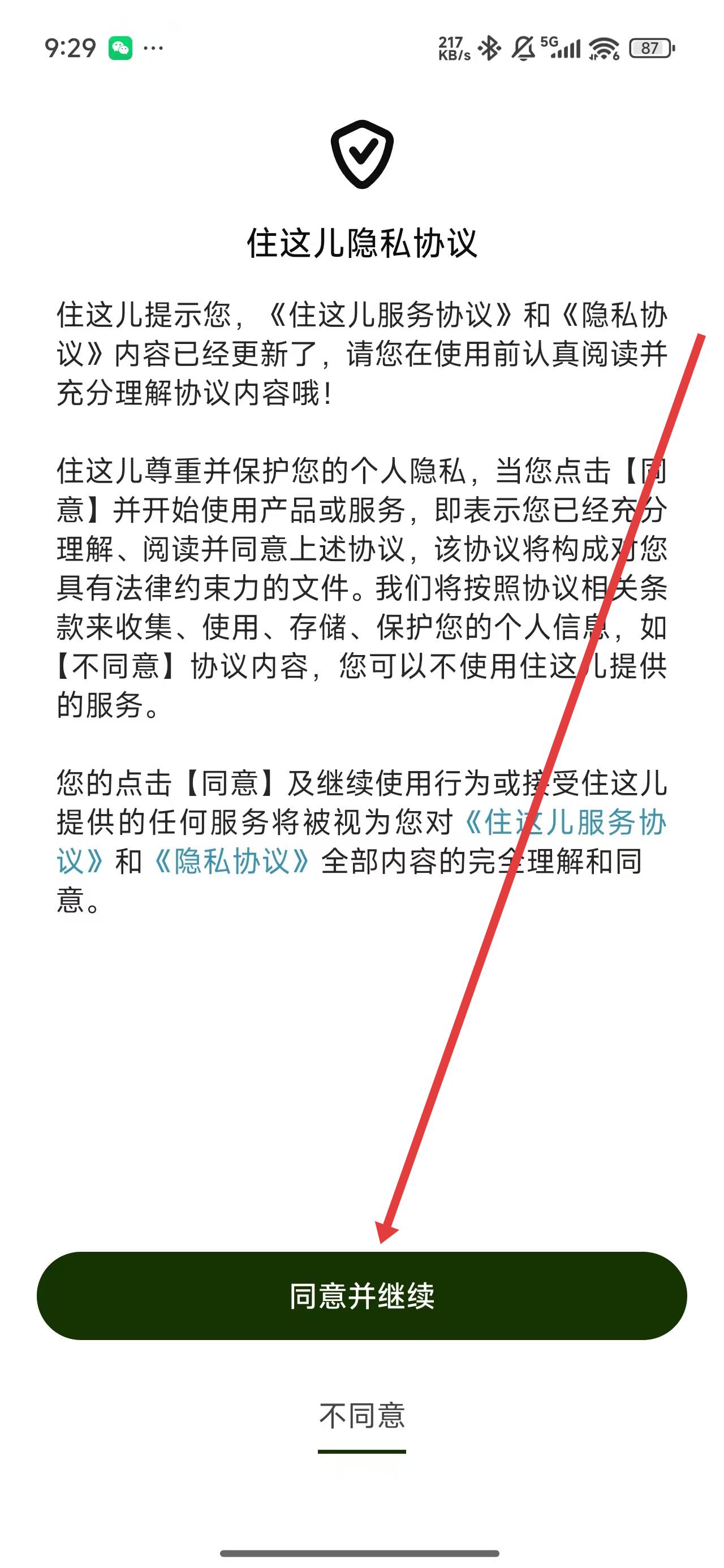 1、在进入到万科业主app后,点击同意并继续按钮开始进入使用。