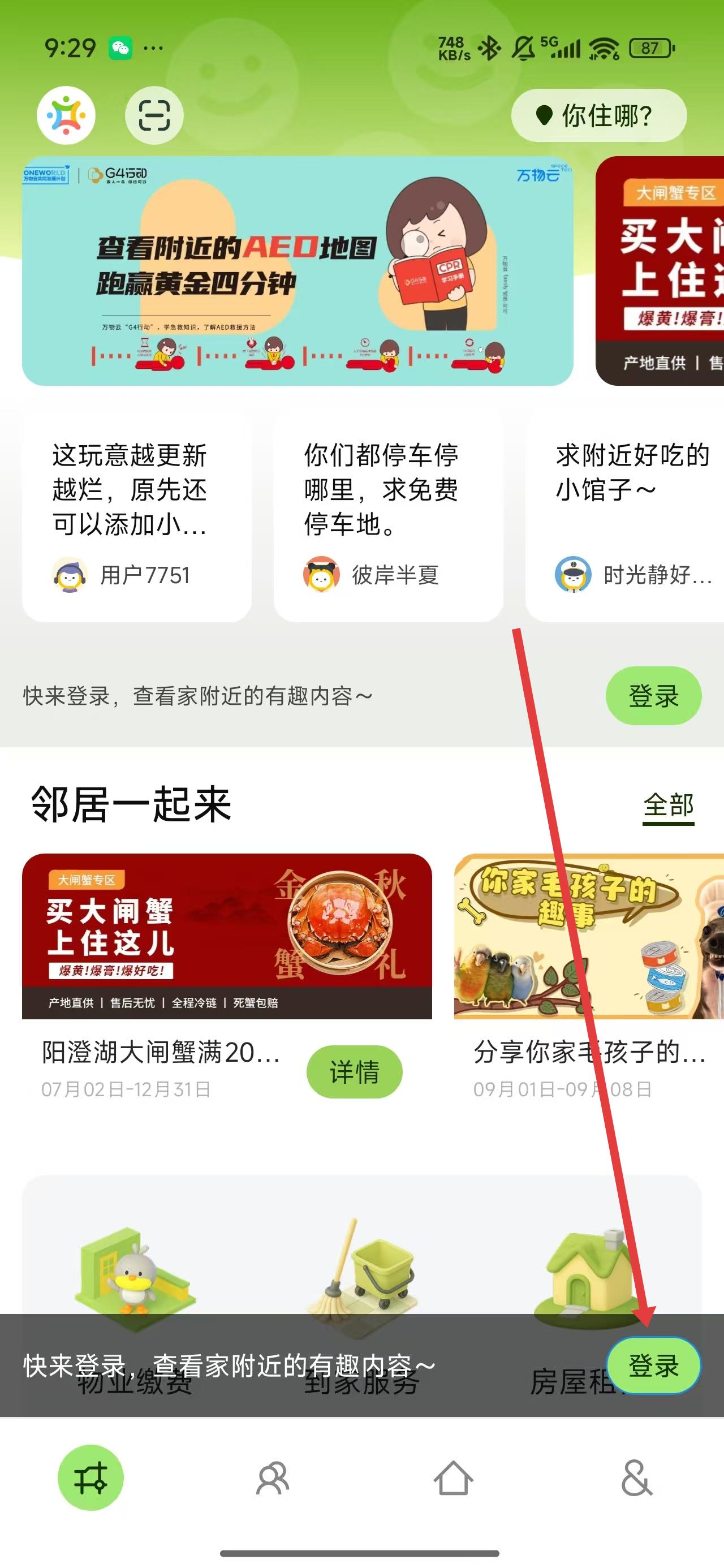 2、在万科业主app首页中,可以点击下方的登录按钮开始登录账号。