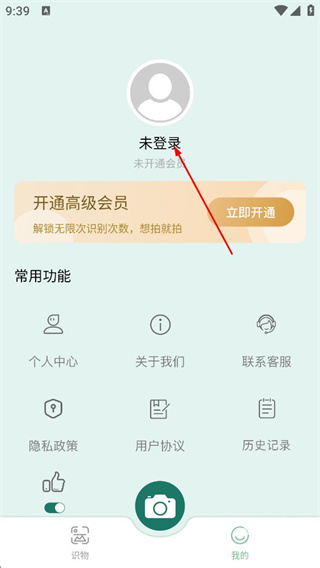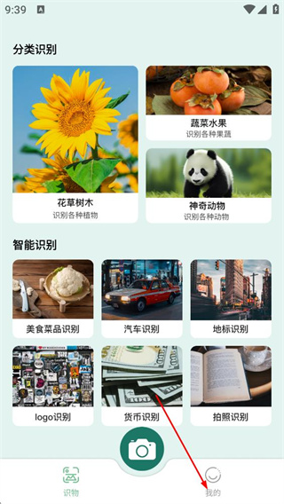 1、在分类识别首页,点击底部的我的选项,进入个人中心页面。