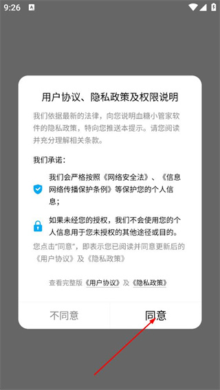 1、在隐私政策及权限说明弹窗中,点击同意,进入应用首页。