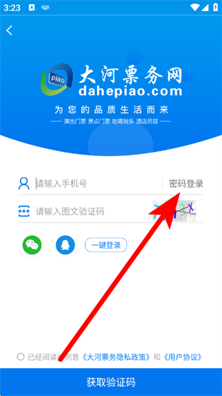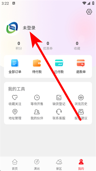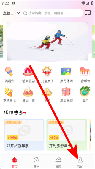 1、打开大河票务,点击底部的我的,进入我的页面。