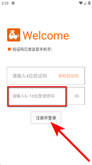 4、设置登录密码,点击注册并登录,完成注册。