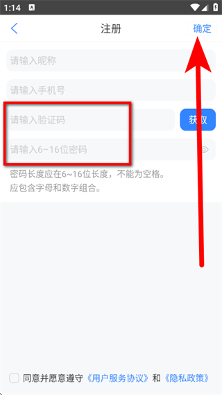 4、输入验证码和设置密码,勾选协议后,点击确定,完成注册。