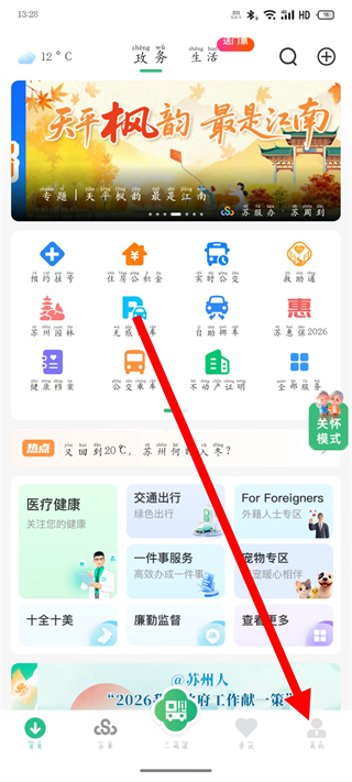 1、打开苏周到,点击底部的我的,进入我的页面。