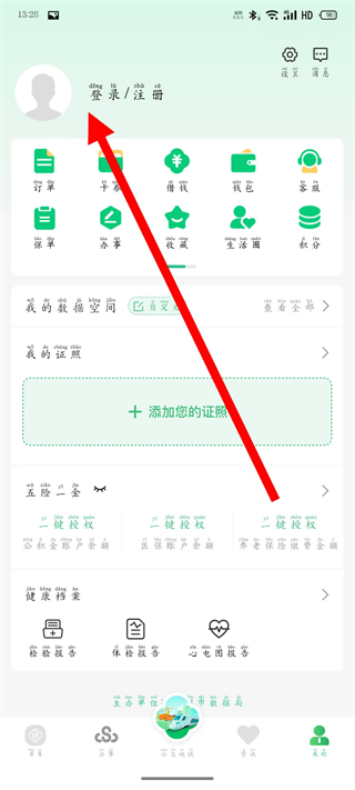 2、在我的页面,点击登录注册,进入登录页面。