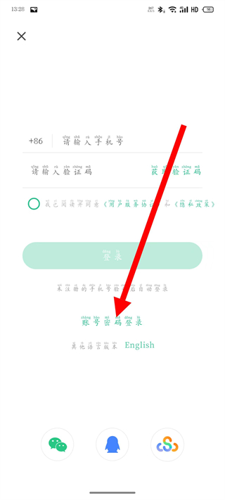 3、在登录页面,点击账号密码登录,进入页面。