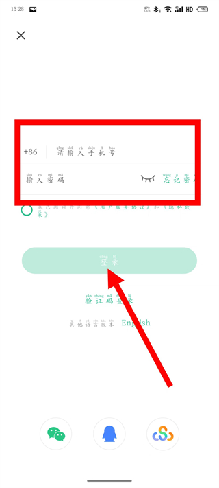 4、在账号密码登录页面,输入手机号和密码,勾选协议后,点击登录,完成登录。