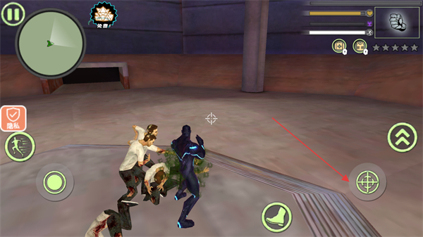 1、操控角色靠近僵尸群体,触发战斗互动,准备利用攻击技能应对围攻的僵尸。