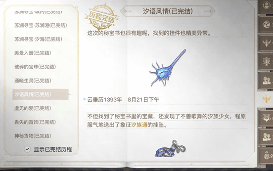 需要完成的任务有:苏澜寻宝·汐海和汐族少女。