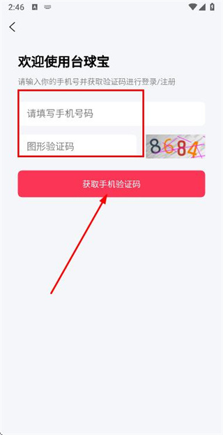 3、在手机登录页面填写手机号,图形验证码后,点击获取验证码。