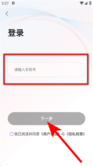 3、在登录页面,输入手机号,勾选协议后,点击下一步。