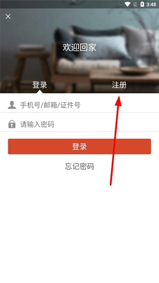 2、在该界面中,找到上方的注册选项并点击,切换至注册相关页面。