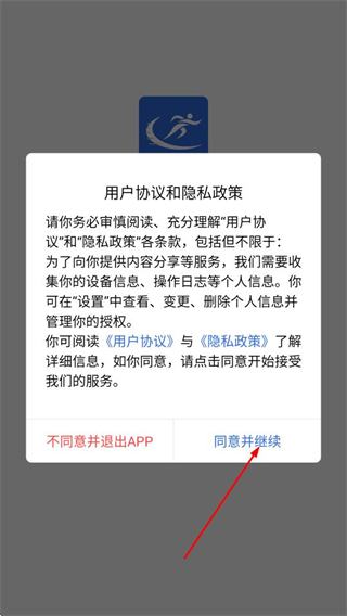 1、在用户协议和隐私政策”弹窗中,点击同意,进入应用首页。