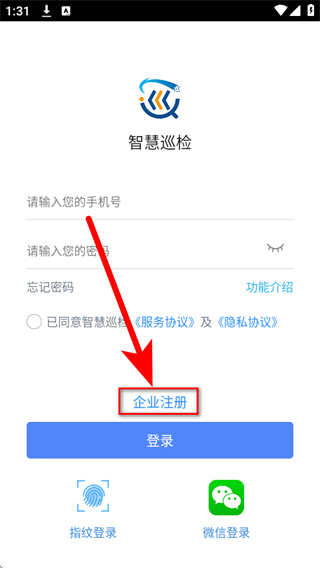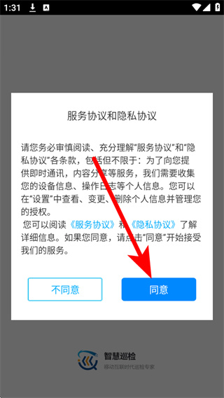 1、打开智慧巡检,在弹窗中点击同意,进入登录页面。