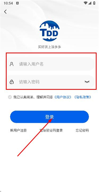 3、在登录页面填写用户名和密码,勾选协议后,点击登录完成账号登录操作。