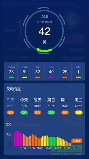 【空气质量预报】分小时空气质量和未来5天空气染、PM2.5指数、AQI指数信息查询;