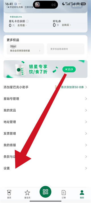 星巴克怎么退出登录