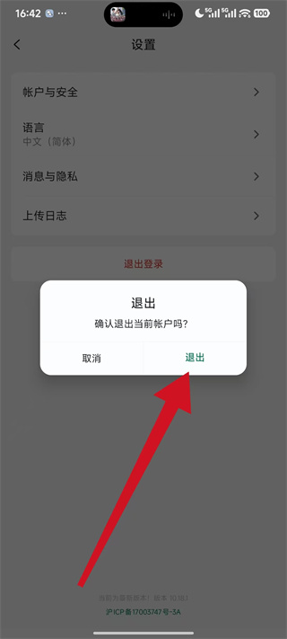 3、在设置页面里,点击退出登录,触发退出确认弹窗。