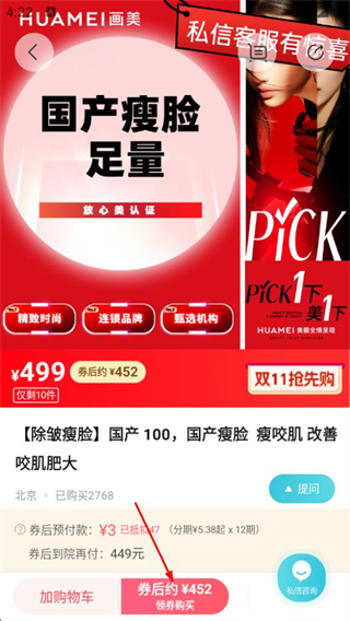 2、在除皱瘦脸页面,选择感兴趣的商品,进入商品详情页面。