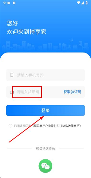 3、在验证码输入框中填写收到的验证码,点击登录完成账号的登录操作。