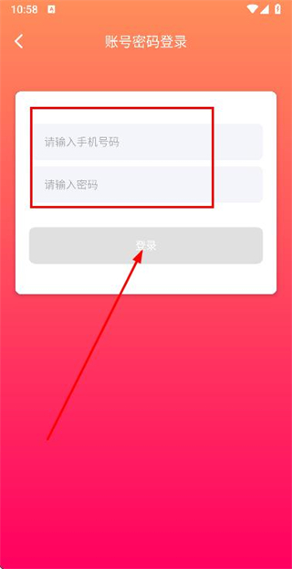 3、在账号密码登录页面填写手机号码和密码后,点击登录按钮完成登录操作。