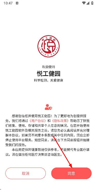 1、在使用协议隐私政策弹窗中点击同意按钮,进入登录页面。